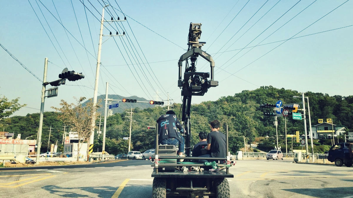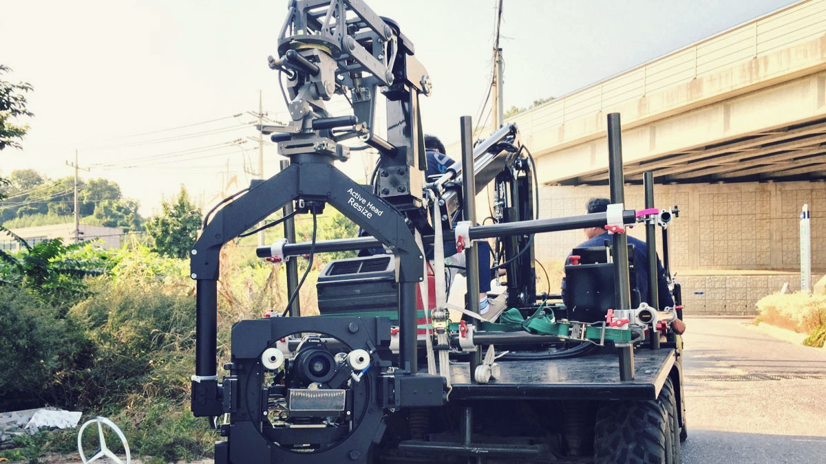 Test of Shock Absorber System with ActiveHead before the show during Cine Gear Expo in LA